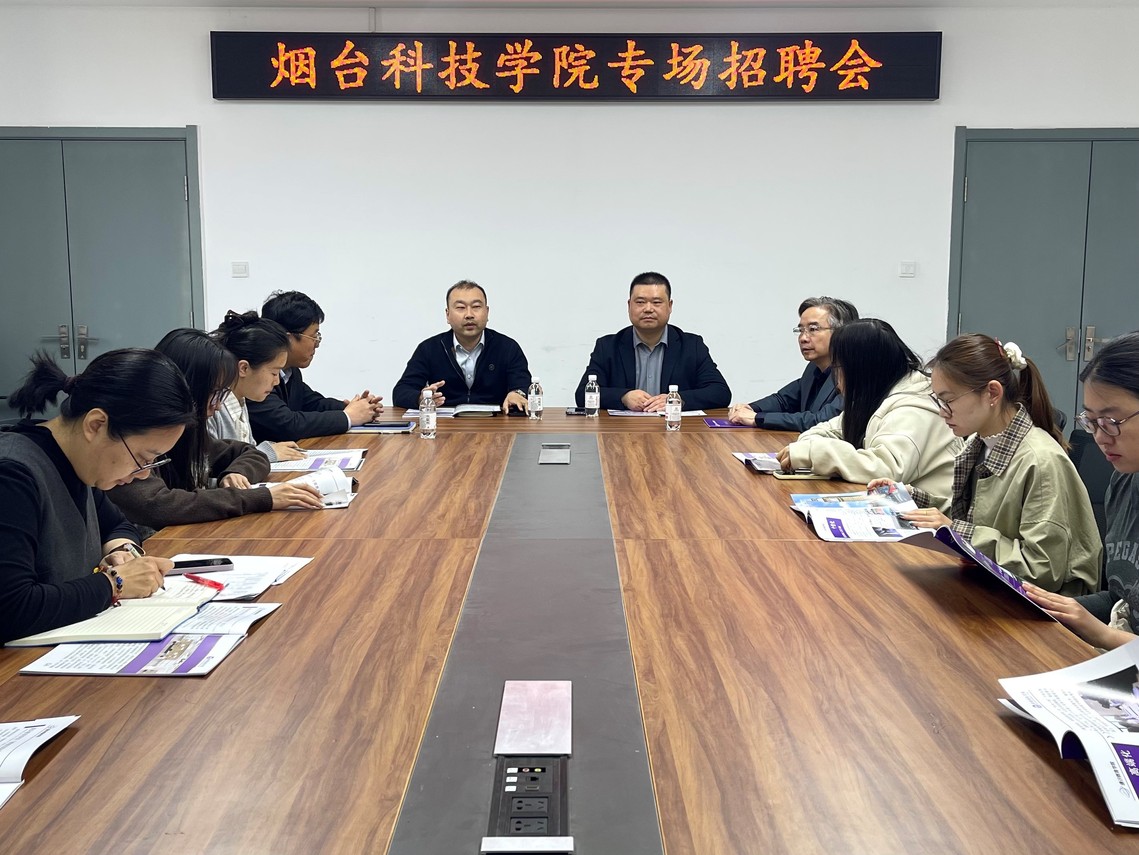 为精准对接毕业生就业需求,助力学子实现高质量就业,4月16日上午,中国石油大学(华东)外国语学院举办烟台科技学院专场招聘会。烟台科技学院通识教育学院教学副院长戴晓晖、党总支书记兼学工副院长宁卫勇应邀参会,外国语学院院长毛浩然、党委副书记卢志同、辅导员梅琳及30余名学生共同参会。